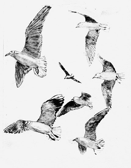 Vol de mouettes (pointe sèche)